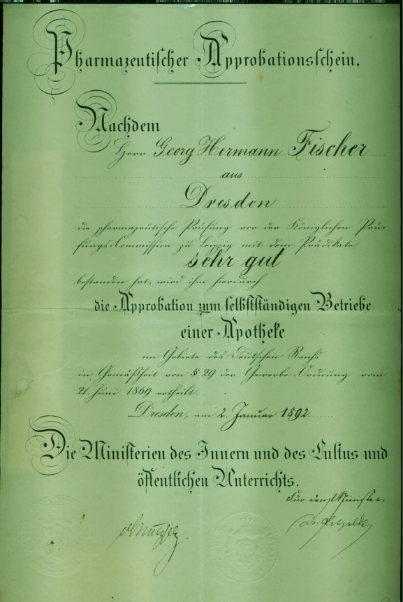Apotheker Alexander Fischer, der nach erfolgreichem Studium an der
